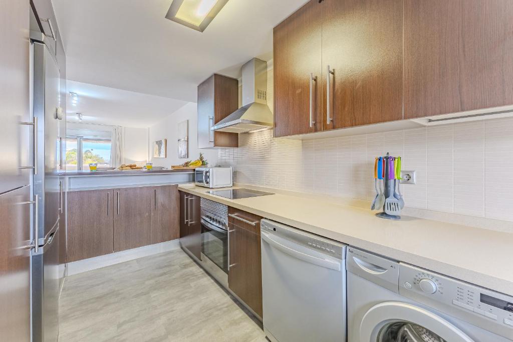 Cet appartement comporte 2 chambres, 1 salle de bains, du linge de lit, des serviettes, une télévision à écran plat avec les chaînes du satellite, une cuisine entièrement équipée et une terrasse offrant une vue sur la mer.