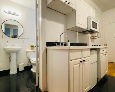 La cuisine bien équipée est pourvue de plaques de cuisson, d'un réfrigérateur, d’un micro-ondes et d'ustensiles de cuisine. Ce studio climatisé dispose d’une salle de bains privative et d’une télévision à écran plat avec des services de streaming. Ce logement comprend 3 lits.