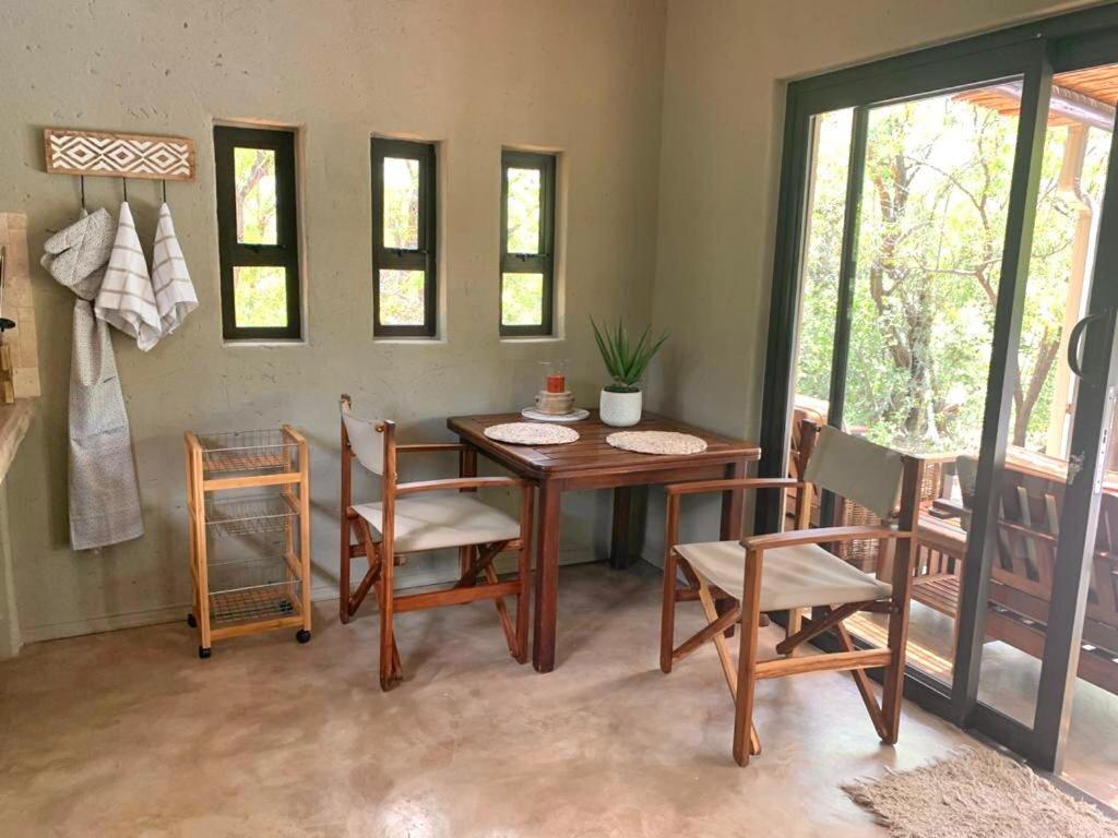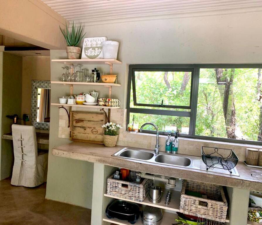 You live on 3 levels, on the ground floor is your boma with a braai fire pit, 1st floor is your porch, the sitting area with a kitchenette and bathroom and your bedroom is in the loft. Caution: not for people who struggle with stairs, it is mainly a unit for the younger generation.