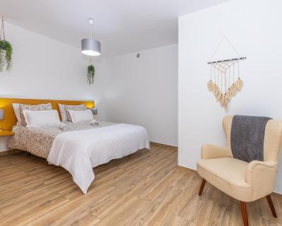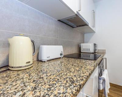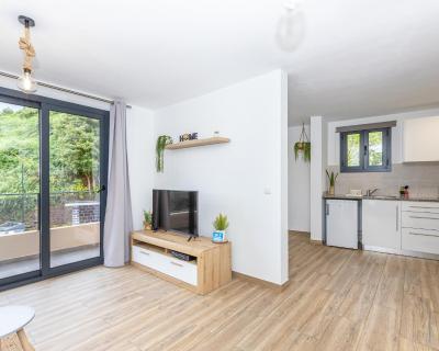 The apartment provides guests with a balcony, quiet street views, a seating area, cable flat-screen TV, a fully equipped kitchen with an oven and a microwave, and a private bathroom with shower and a hair dryer. A fridge, a stovetop and kitchenware are also provided, as well as a kettle. At the apartment complex, every unit includes bed linen and towels.