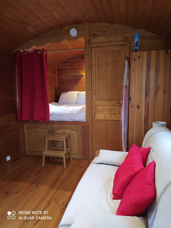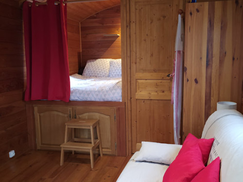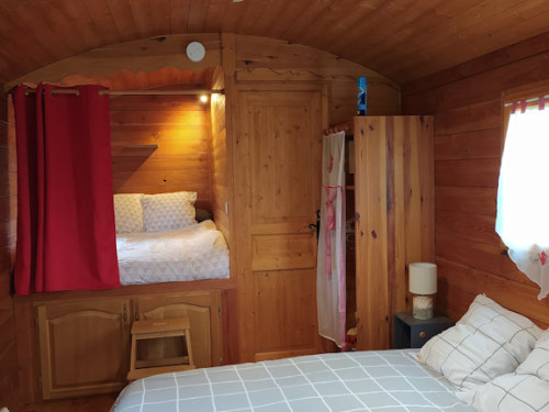 Pour le couchage, les roulottes ont chacune un lit en alcôve en 140 et/ou un canapé-lit type BZ en 140 et/ou 2 lits superposés.