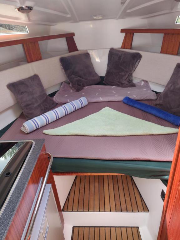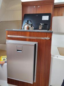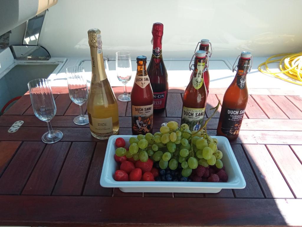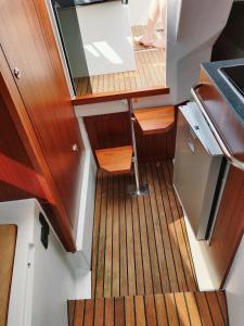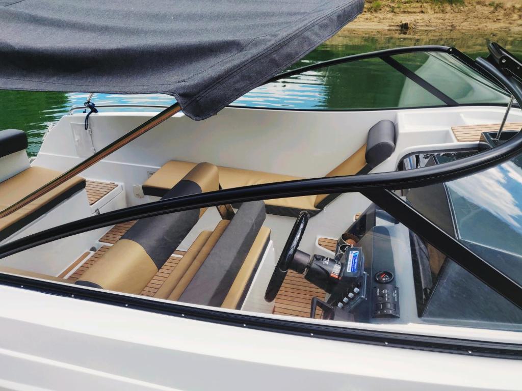 The air-conditioned boat consists of 1 bedroom, a living room, a fully equipped kitchenette with a fridge and a kettle, and 1 bathroom with a shower. Guests can enjoy a meal on an outdoor dining area while overlooking the lake views.