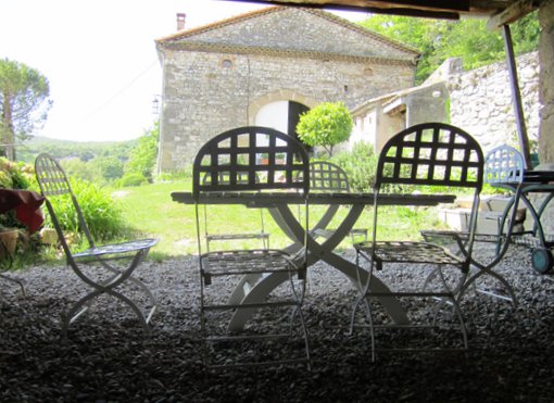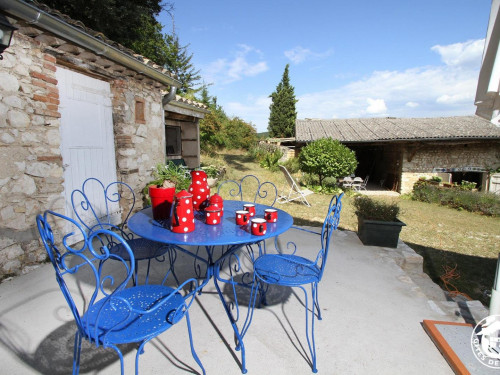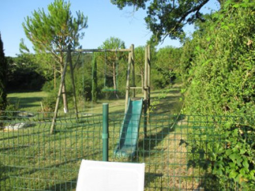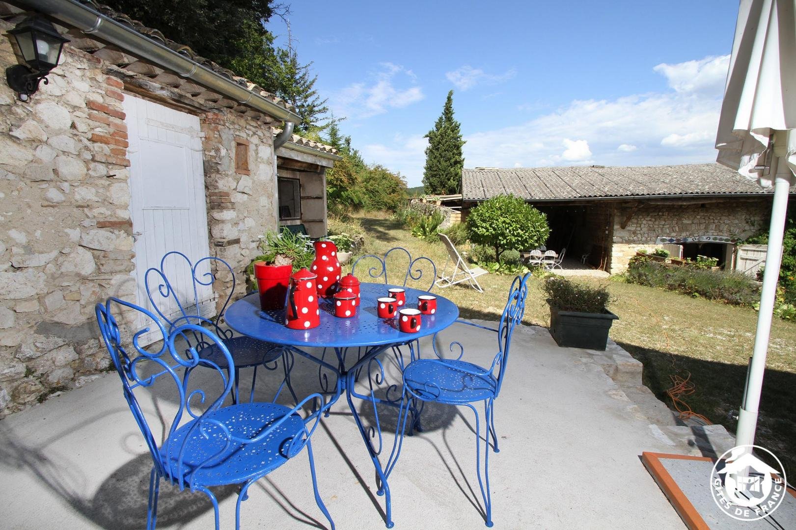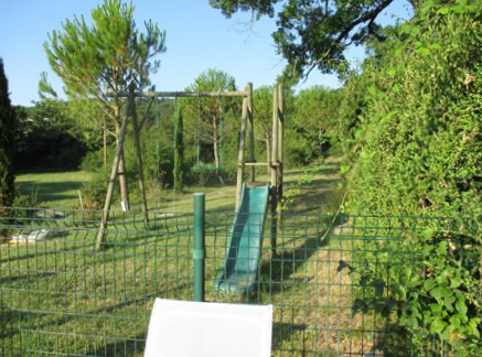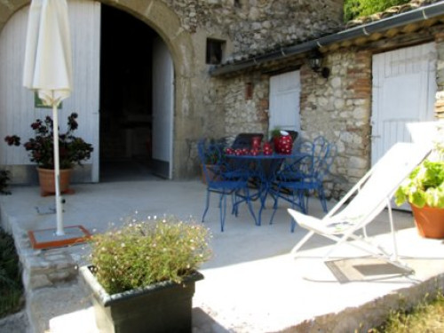 En extérieur : terrasse privative et grande dépendance avec barbecue, table, chaises longues... Accès commun à la grande piscine, la table de ping-pong, le baby-foot... Environnement bucolique et calme à 4 km du village.