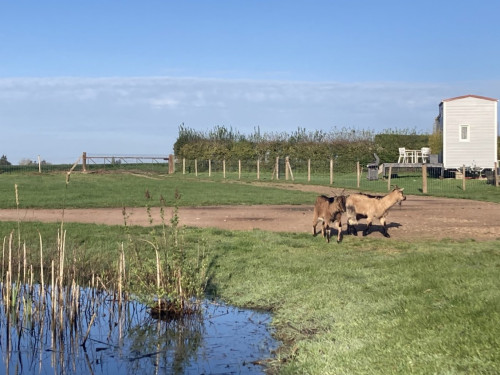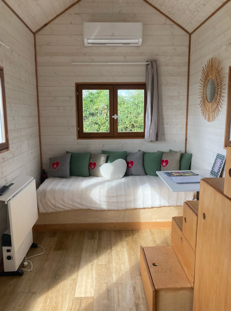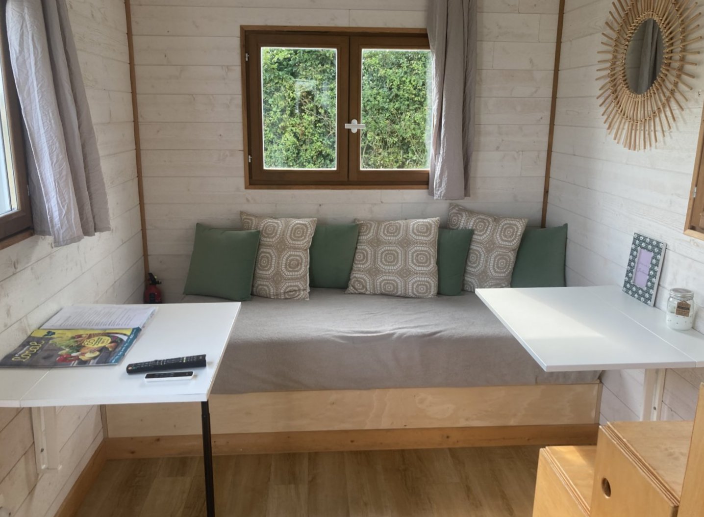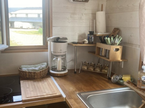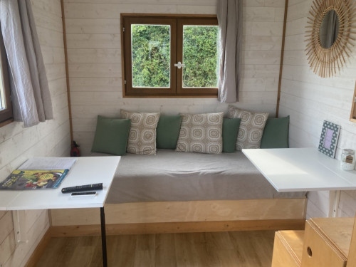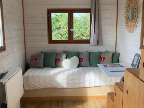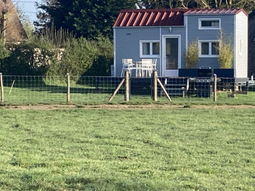 La tiny house est dans un jardin clôturé de 200 m² et peut éventuellement accueillir 1 ou 2 petits chiens en supplément.