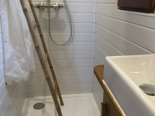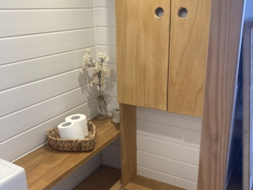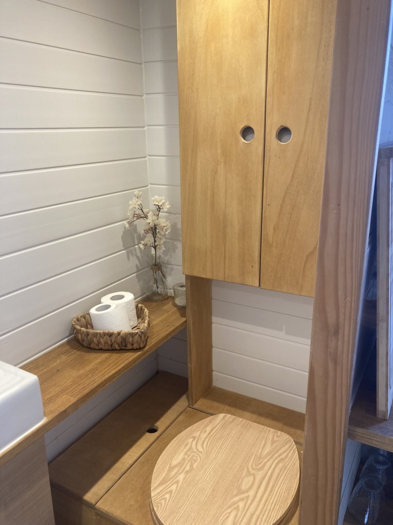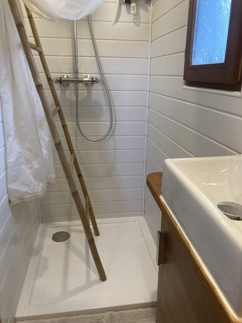 Une salle de douche agréable avec ses toilettes sèches, juste pour l'expérience.