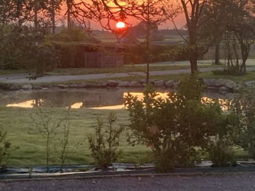 En mezzanine une chambre avec 1 lit 2 places avec matelas à mémoire de forme, vue sur les champs depuis les fenêtres.