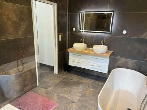 Cette villa avec climatisation comprend 6 chambres, ainsi que 4 salles de bains possédant une douche, une baignoire et un sèche-cheveux. La cuisine est pourvue d’un réfrigérateur, d’un lave-vaisselle et d’un four. Elle est également dotée d’une machine à café.