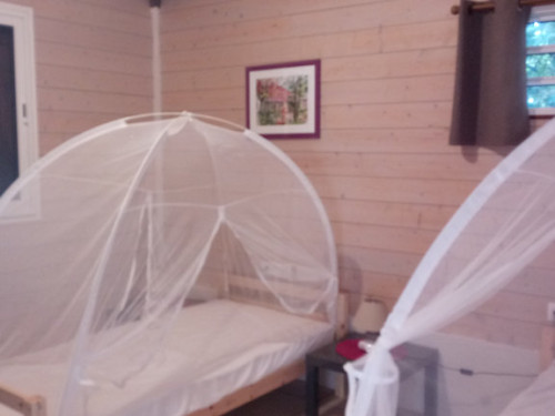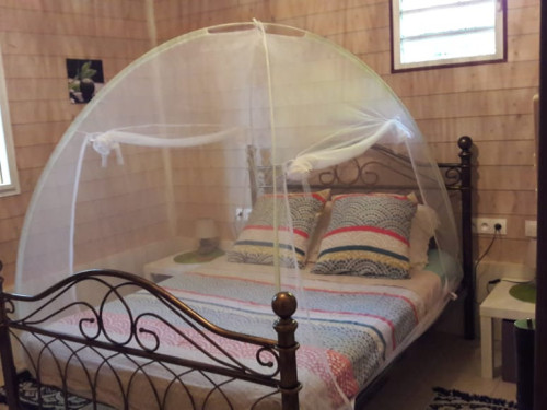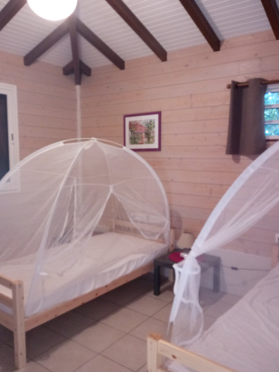 Il y a 2 bungalows de 5 places (2 chambres) et 1 de 10 places (4 chambres).