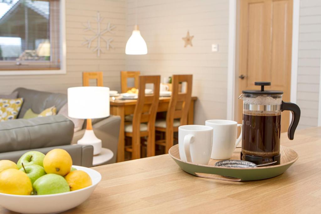 Featuring a Blu-ray player, the lodge has a kitchen with a fridge, a dishwasher and an oven, a living room, a dining area, 2 bedrooms, and 1 bathroom with a shower. Towels and bed linen are provided in the lodge.
