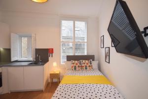 The studio provides a washing machine, a tea and coffee maker, as well as a private bathroom featuring a walk-in shower and a hairdryer. In the well-equipped kitchen, guests will find a stovetop, a refrigerator, a dishwasher and kitchenware. The studio features a wardrobe, tumble dryer, parquet floors, a flat-screen TV, as well as a quiet street view. The unit offers 1 bed.