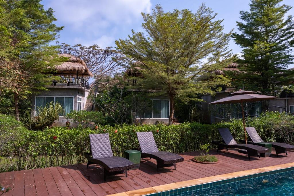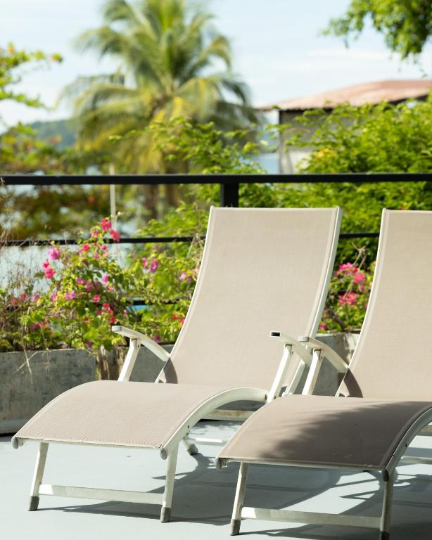 All bungalows are air-conditioned and do have a private rooftop terrace. Bathrooms come with hot/cold rain showers, toiletries and a hairdryer.