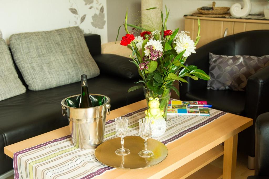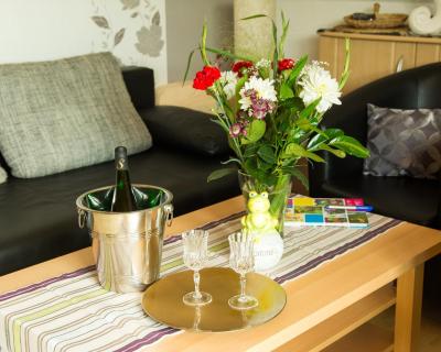 Die Unterkunft Komfortable Apartments in der Villa Eule bietet ihren Gästen eine Veranda / Patio, Gartenblick, einen Sitzbereich, einen Satelliten Flachbild-TV, eine voll ausgestattete Küche mit einem Kühlschrank und einem Ofen sowie ein eigenes Badezimmer mit einer Dusche und kostenlosen Pflegeprodukten. Es gibt eine Mikrowelle, eine Herdplatte und einen Toaster sowie eine Kaffeemaschine und einen Wasserkocher.