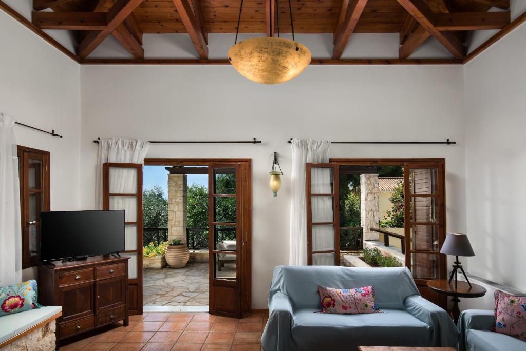 For guests with children, the villa features an indoor play area, outdoor play equipment and a baby safety gate. Guests at Koukounari luxury villa can enjoy table tennis on-site, or go cycling or hiking in the surroundings.