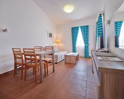 - The property features 119 apartments with a terrace or balcony, air conditioning, kitchen, TV, safe, and free Wi-Fi. The apartments are decorated in a simple Mediterranean style and are situated on a hill overlooking the surrounding nature.