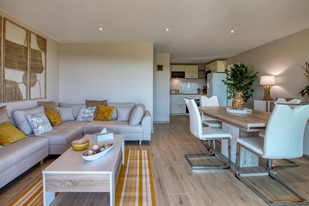 The holiday home is fitted with 1 bedroom, 1 bathroom, bed linen, towels, a flat-screen TV, a dining area, a fully equipped kitchen, and a terrace with garden views. A private entrance leads guests into the holiday home, where they can enjoy some wine or champagne. The property has an outdoor dining area.