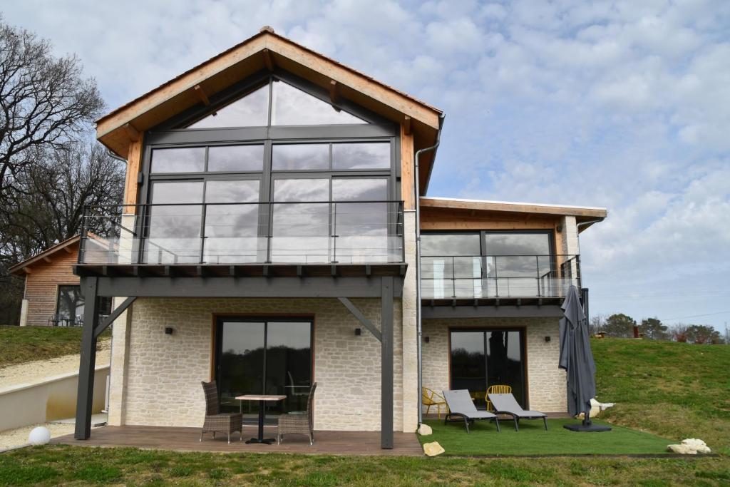 L'Annexe Coté Castagne du Domaine des Hauts de Rouquette, a property with a shared lounge, is set in Eymet, 17 km from Château des Vigiers Golf Course, 28 km from Barthe Golf Course, as well as 34 km from Marmande Golf Course. The air-conditioned accommodation is 24 km from Bergerac Train Station, and guests can benefit from private parking available on site and free WiFi. The property offers bike hire and features a garden and picnic area.