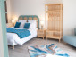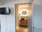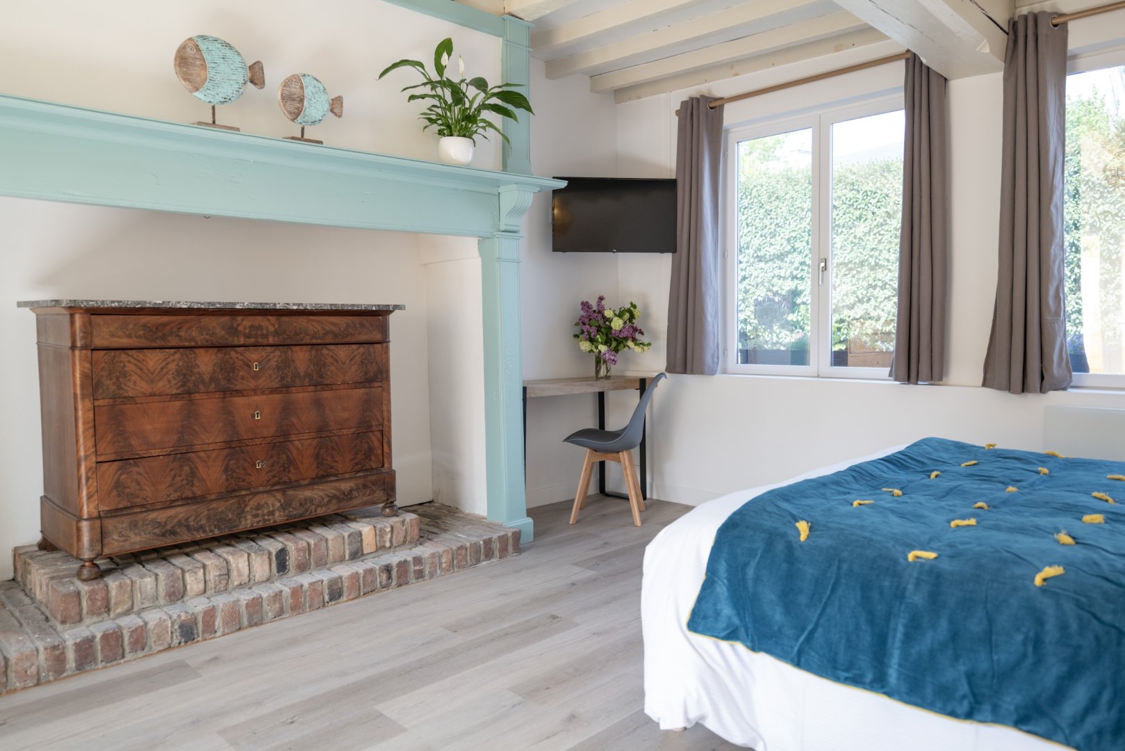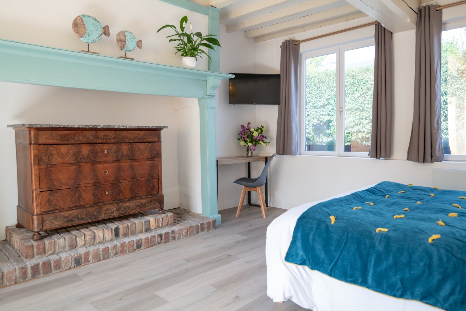 This charming ground floor houses a spacious 22 m² bedroom with a foldable extra bed, flat screen TV