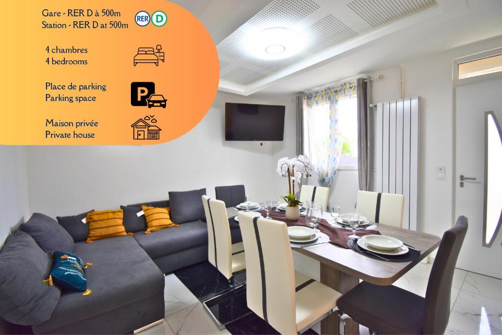 L’hébergement L'Écrin de Goussainville vous accueille à respectivement 18 km et 21 km de ces lieux d’intérêt : Stade de France et Gare de l'Est. Il comprend une connexion Wi-Fi gratuite et une terrasse. Cette maison de vacances est à respectivement 22 km et 23 km de : Gare de Chantilly-Gouvieux et Parc Astérix.