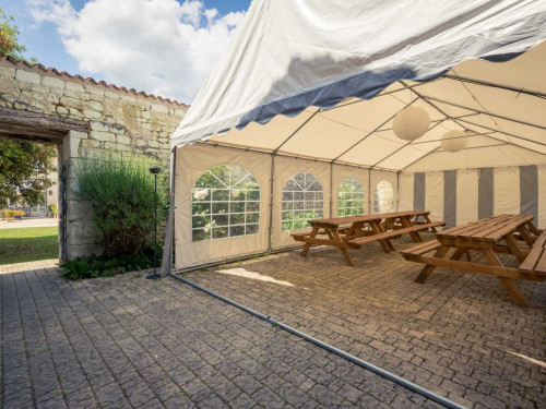À partir d'avril, grand barnum sur la terrasse de La Sente pour vos repas extérieurs. Grand barbecue.
