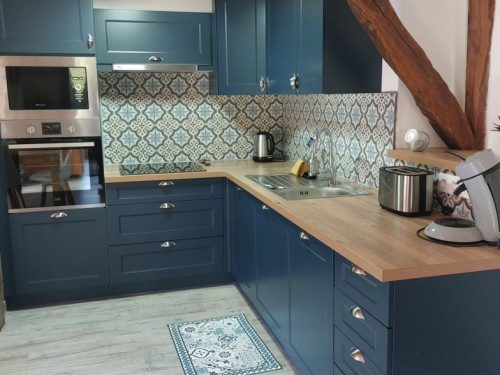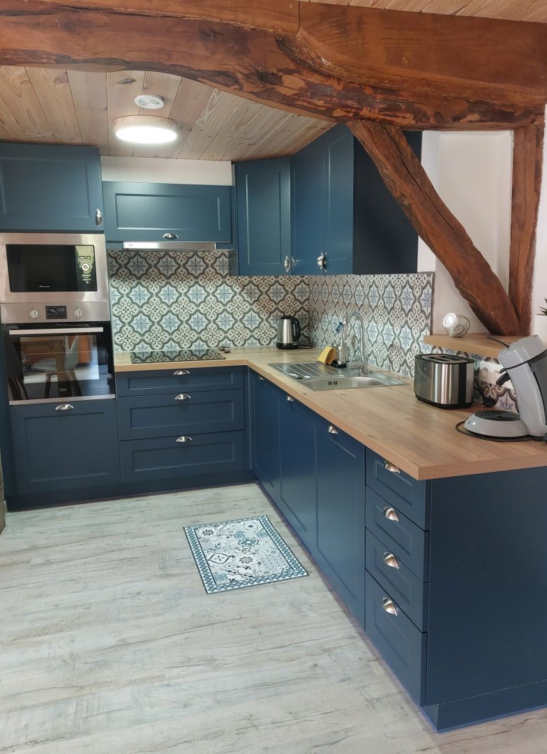 Cuisine : four, plaque induction, hotte, micro-ondes, lave-vaisselle, frigo-congélateur, bouilloire, grille-pain, machine à café, appareil à raclette