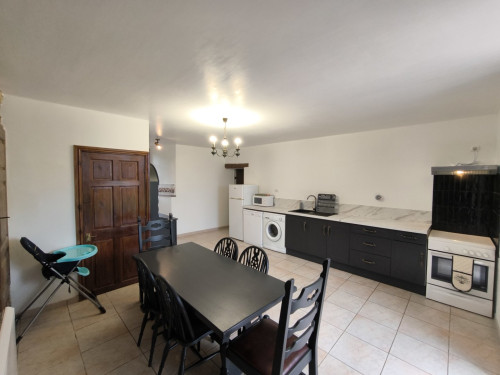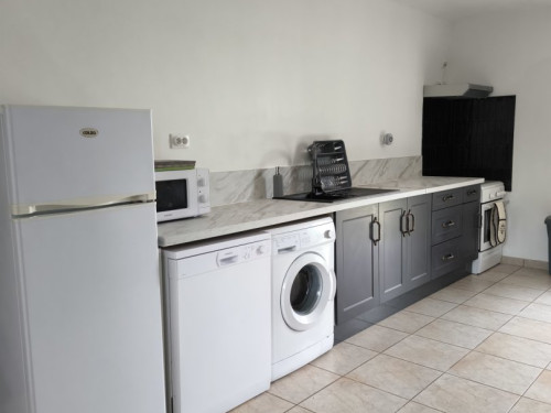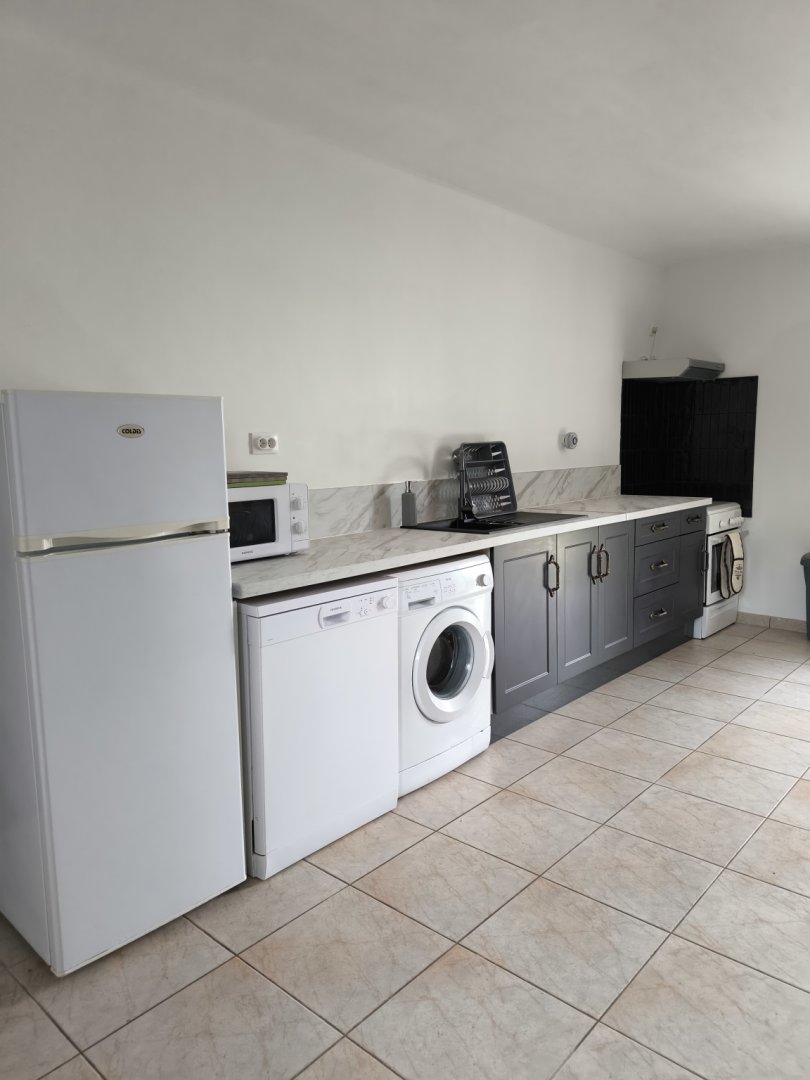 La propriété dispose d'une cuisine entièrement équipée avec des appareils modernes, notamment une cuisinière à gaz, un four micro-ondes, un réfrigérateur/congélateur, une machine à café et un lave-linge, garantissant votre confort pendant votre séjour.