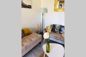 The holiday home features 2 bedrooms, 1 bathroom, bed linen, towels, a flat-screen TV with streaming services, a dining area, a fully equipped kitchen, and a terrace with garden views. A private entrance leads guests into the holiday home, where they can enjoy some wine or champagne. The property has an outdoor dining area.