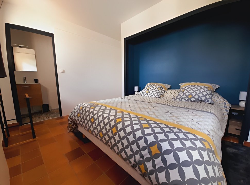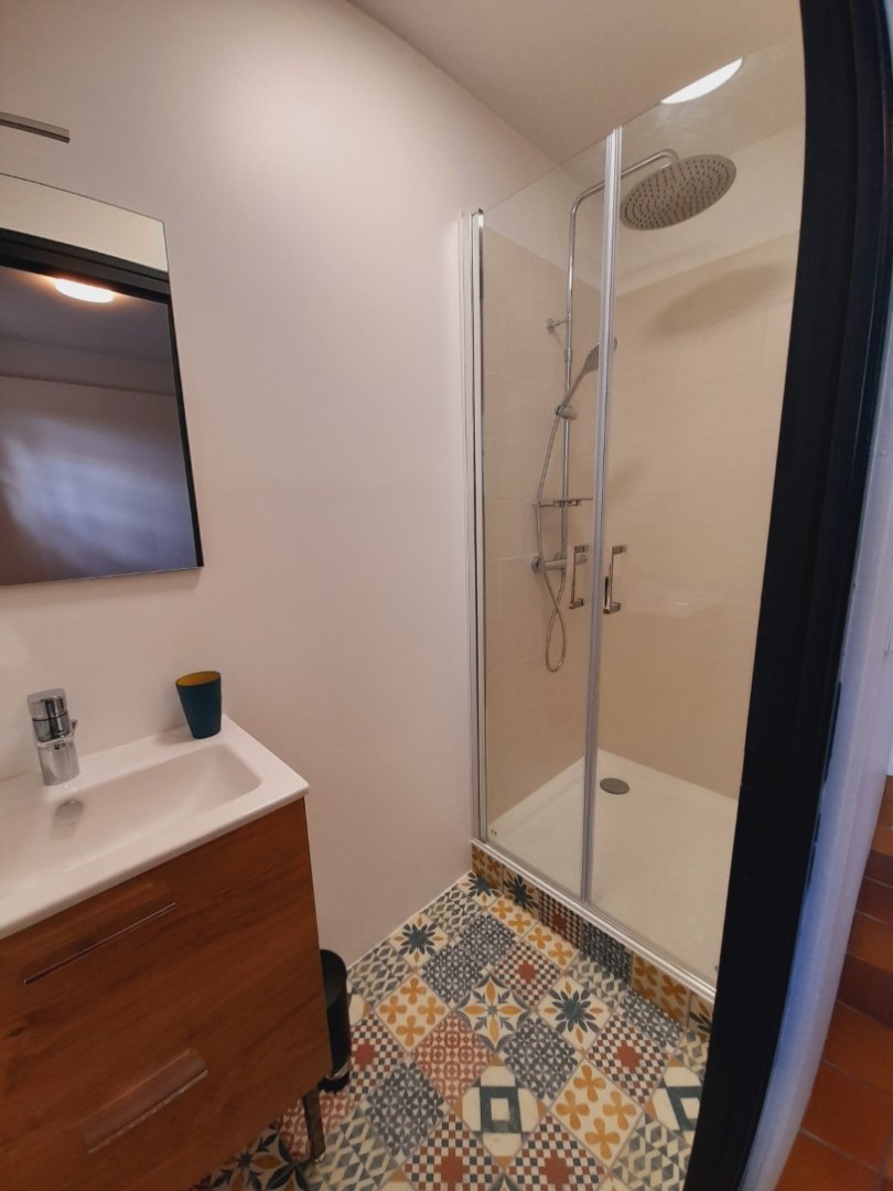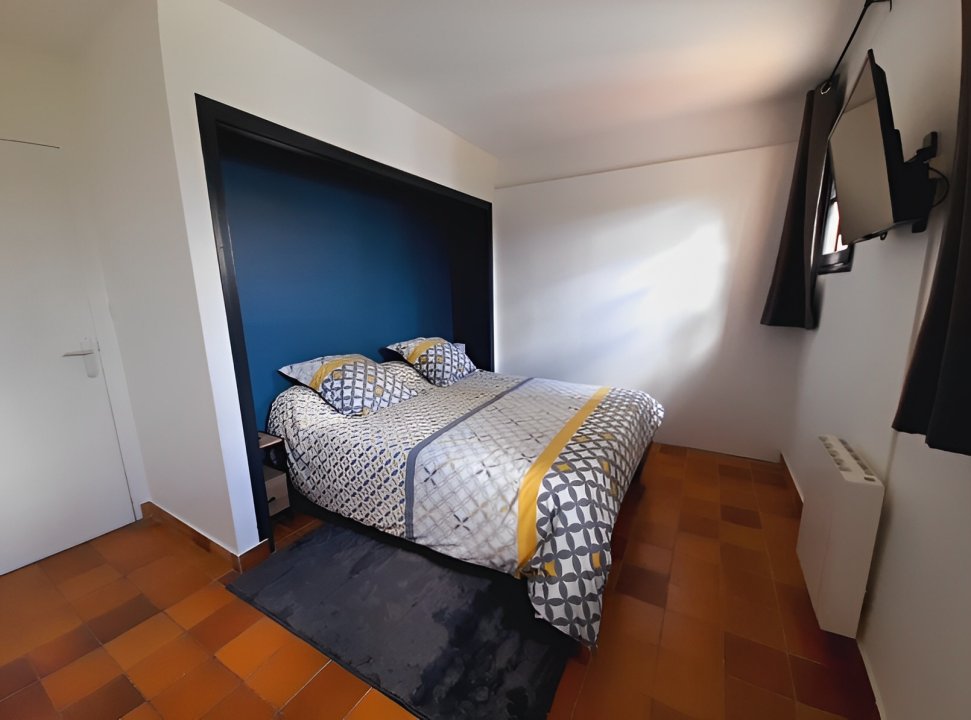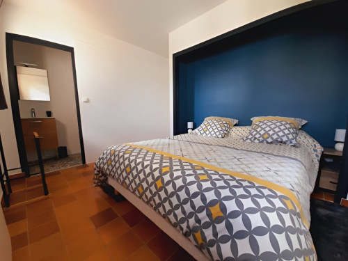 1 chambre avec 1 lit en 160 cm ainsi qu’une salle de douche.