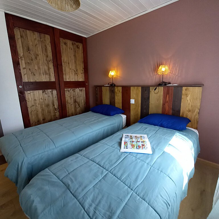 - 2 chambres équipées chacune de 2 lits en 80 cm de large que l’on peut rapprocher ou séparer selon vos besoins et d’un grand dressing (linge de lits et de toilette fourni)