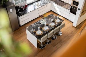 Cette villa comporte 4 chambres, 5 salles de bains, du linge de lit, des serviettes, une télévision à écran plat avec les chaînes du satellite, un coin repas, une cuisine entièrement équipée et une terrasse offrant une vue sur la ville.