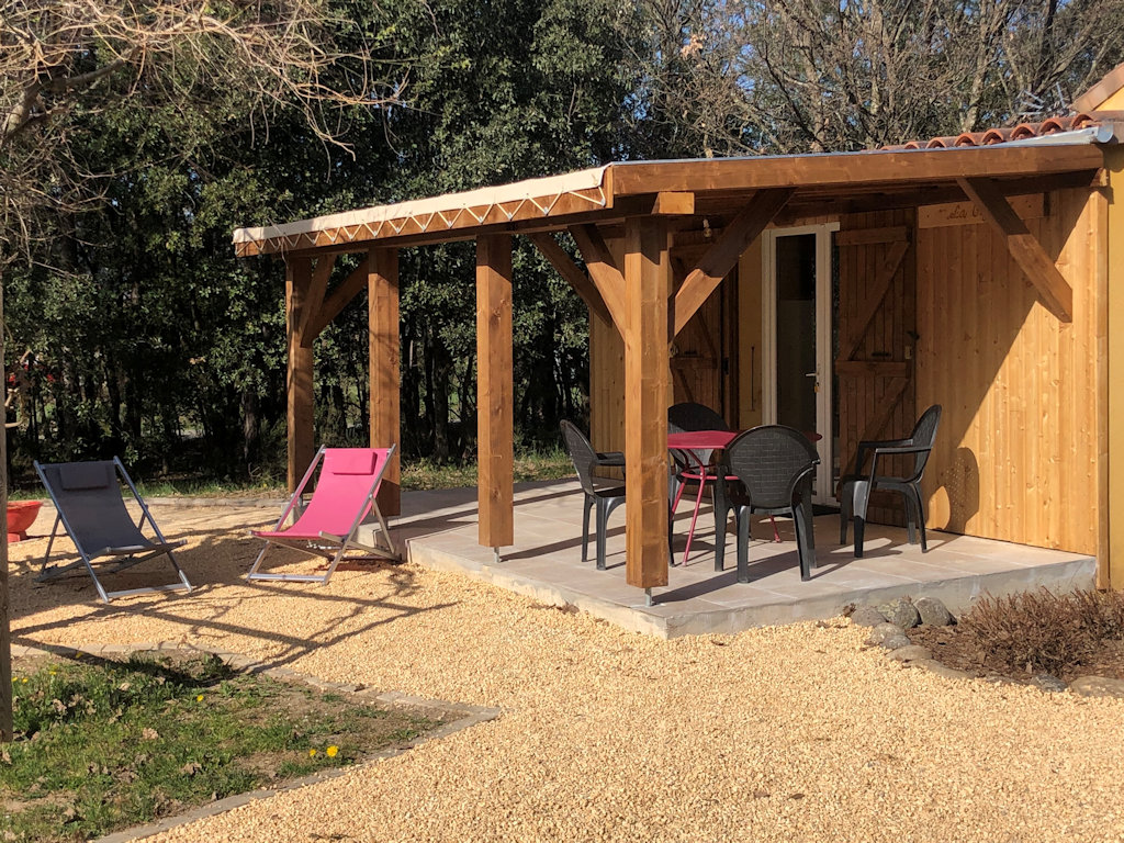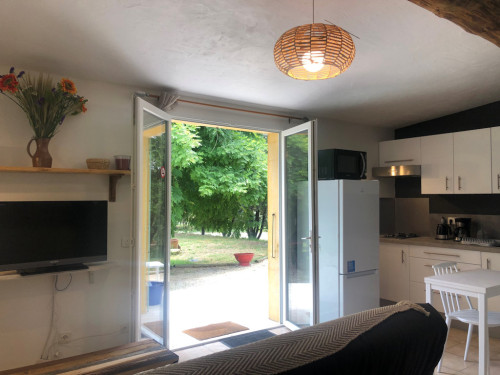 Gîte La Glycine de 30 m², belle cuisine très bien équipée. Belle pièce de vie. Grande terrasse 25 m² couverte et ombragée. Joli terrain d'agrément.