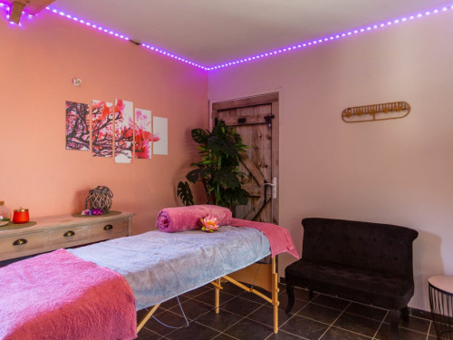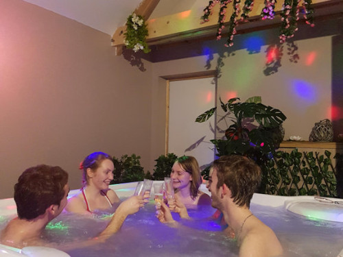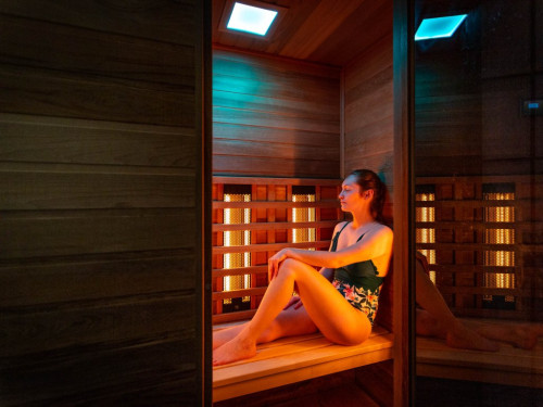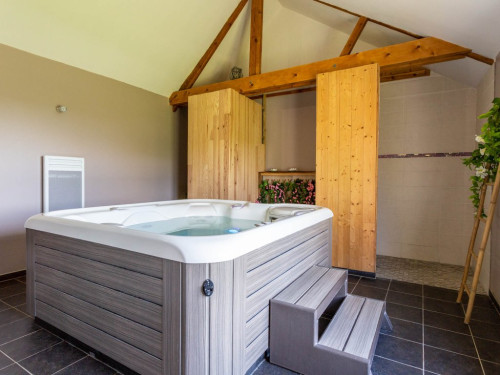 Option espace bien-être sur place avec Spa 5 places, sauna 3 places, massages bien-être, soins esthétiques.