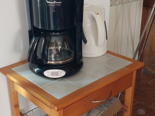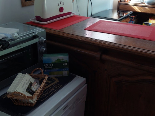 Salle avec coin cuisine au rez-de-chaussée, chambre Jazz avec lit 140, salle d'eau et WC séparés.