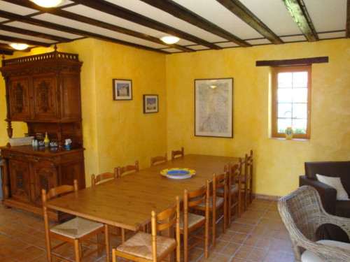 • Salon/salle à manger ouvert avec des sièges confortables et une grande table qui peut accueillir 10 personnes