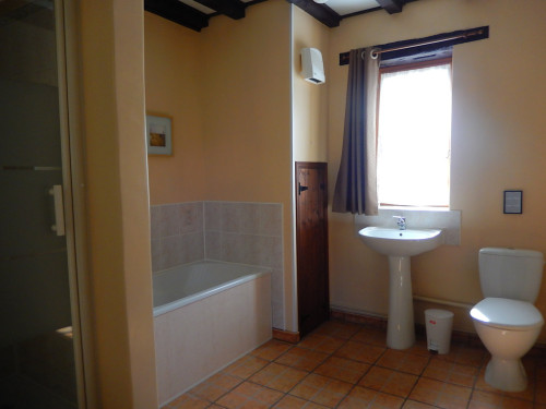 • Salle de bains avec douche, baignoire séparée, lavabo, toilette et chauffage