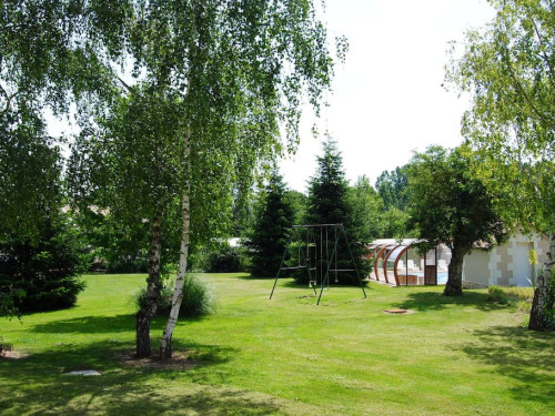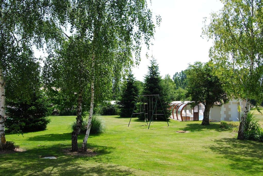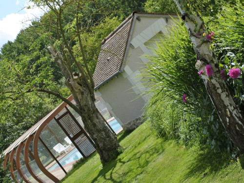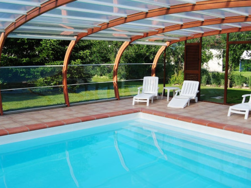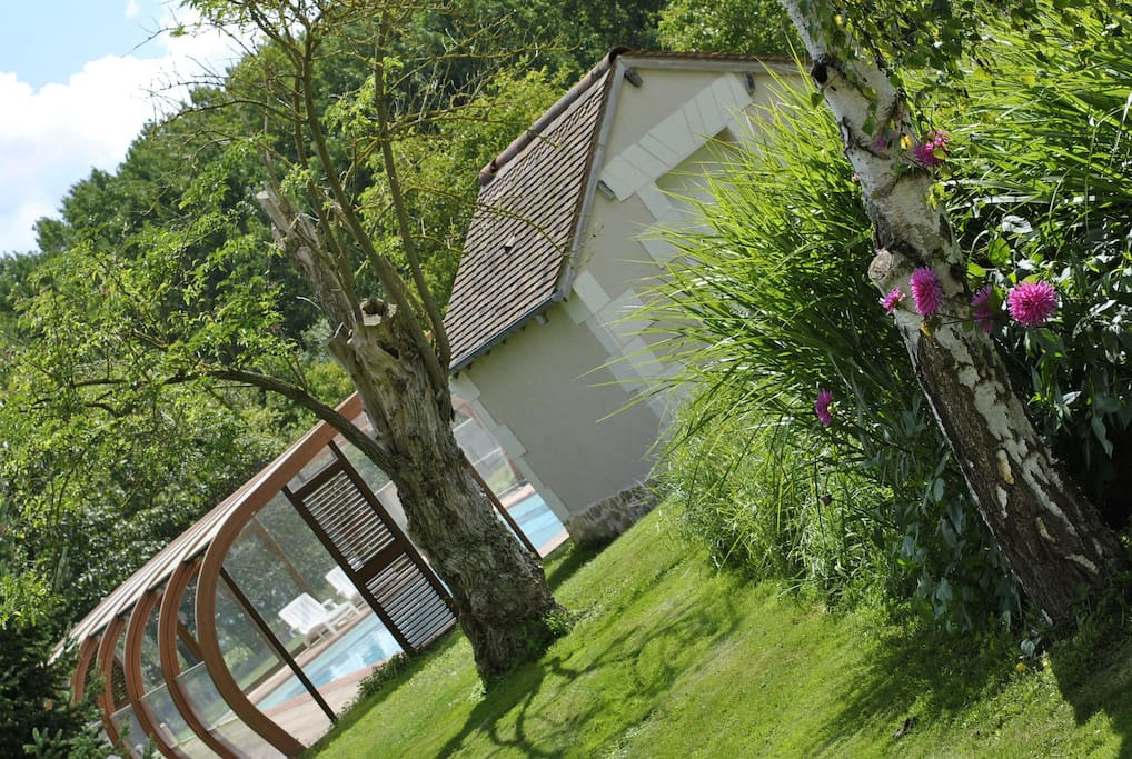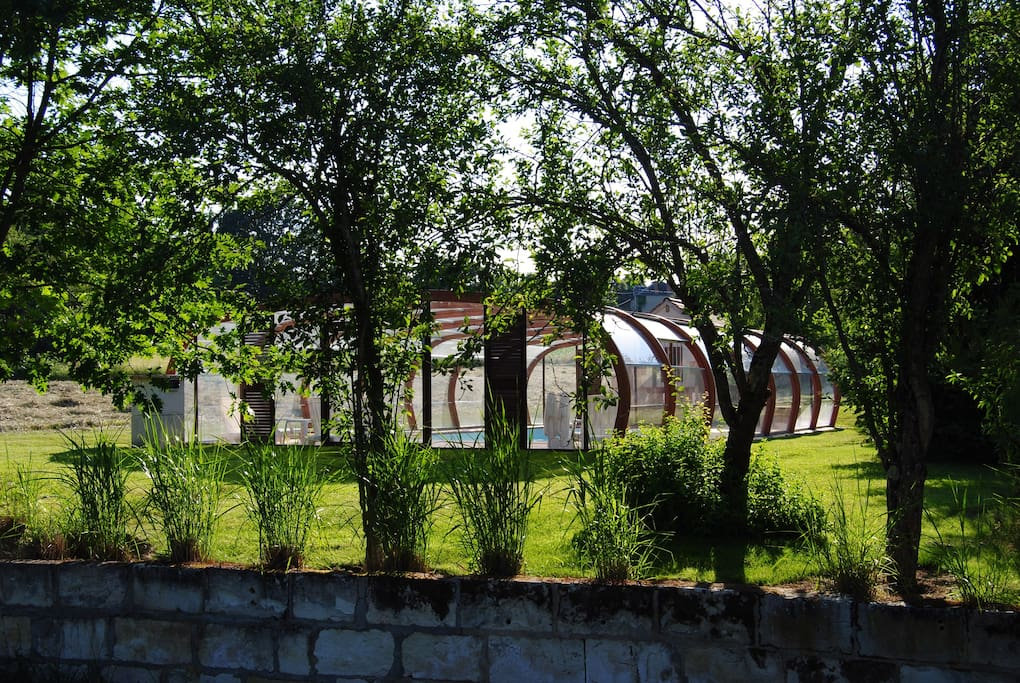 Covered swimming pool in the middle of the wooded park and private garden.