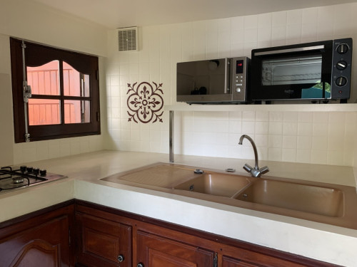 Situé au niveau de la route de Cilaos, en plein centre de la Rivière-Saint-Louis, vous avez tout à proximité, que ce soit boulangerie, glacier, boucher, distributeur, vendeurs fruits et légumes, coiffeur, massages, supérette et 3 traiteurs de plats cuisinés sans oublier 2 pizzerias, bref tout à portée de main :-)