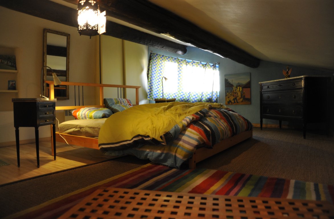 Au 2ème étage : une grande chambre mansardée avec un lit en 160x200.