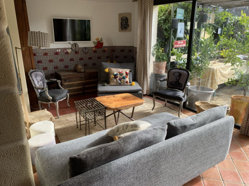 C'est une maison d'artistes vivante et accueillante, elle est exposée plein sud, face au château et à la montagne, et sans vis-à-vis. En cas de forte chaleur, toutes les pièces sont climatisées.
