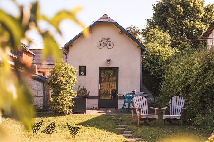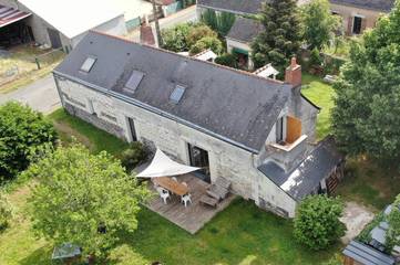 A 300m des bords de Loire, petite maison pleine de charme climatisée avec piscine chauffée dans un environnement calme et boisé. A 20 minutes de Saumur, "Le Verdelay" ce gîte à La Ménitré se trouve à proximité immédiate des villages typiques des bords de Loire (Le Thoureil, Gennes, ...). En voiture, en bateau, à pied, à vélo, ou vol en montgolfière : quel que soit le chemin emprunté, vous succomberez au charme des paysages ligériens dans un site classé au patrimoine mondial de l'UNESCO. Célèbre pour ses troglodytes et ses vins, la région de Saumur saura ravir les amoureux de patrimoine. Aménagé sur 2 niveaux, le gîte s’ouvre sur un ravissant séjour au charme d'antan : tomettes, poutres apparentes, four à pain, pierres de tuffeau... pour une immersion dans le passé ! Au rez de chaussée : pièce de vie avec cuisine équipée (four, micro-ondes, plaques induction, lave-vaisselle,...), espace salon avec télévision, WC indépendant. A l'étage, deux petites chambres cosy avec chacune deux lits 80x200cm (séparés ou assemblés selon les demandes), télévision. Une salle de douche à partager (douche à l'italienne, meuble vasque, WC). Vous pourrez profiter d'un espace extérieur avec salon de jardin et barbecue, de la piscine extérieure chauffée de mai à septembre selon la météo (5mx10m, profondeur 1m à 1.70m, à partager avec les hôtes de la maison d'hôtes) et du parc boisé d'1.4 hectare (vigil