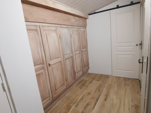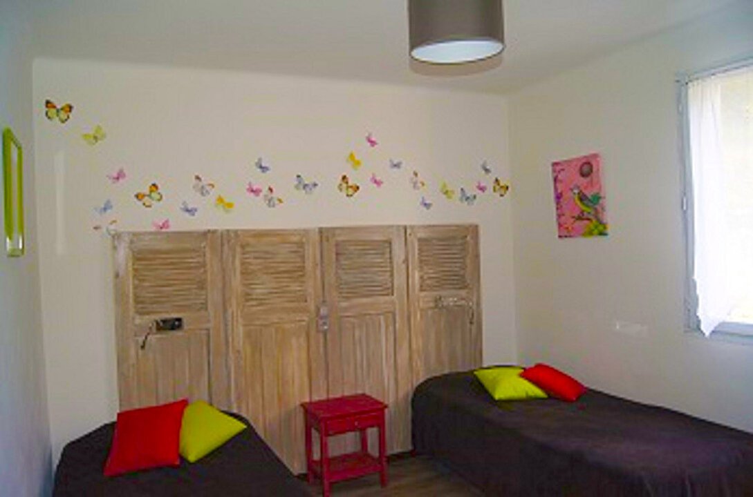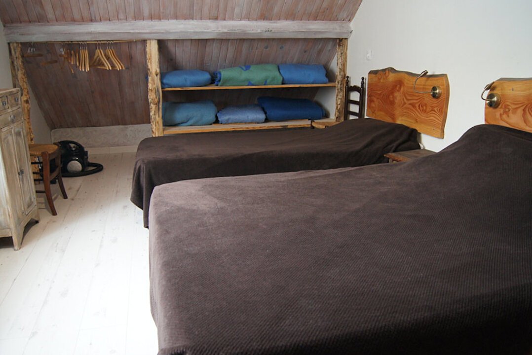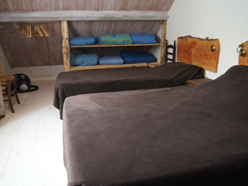 La maison dispose à l'étage : 2 chambres (1 lit en 140 cm, 2 lits en 90 cm dans chacune), 1 WC, 1 salle d'eau.