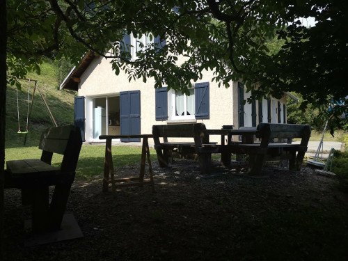 Sympathique maison indépendante de 140 m² sur un terrain de 1350 m², arboré, aménagé de jeux d'enfants. Terrasse privative, sans vis à vis, équipée d'un salon de jardin et d'un parking privé.