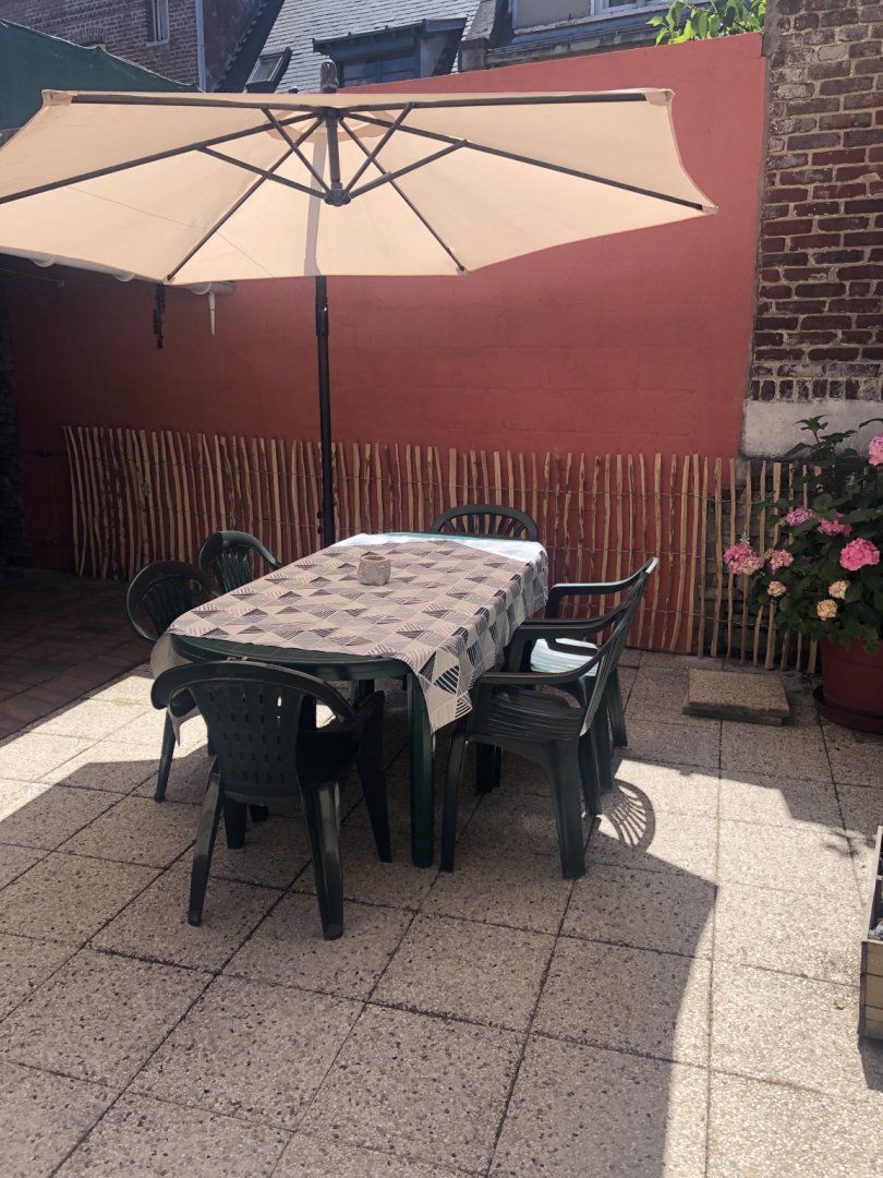 Une maison tréportaise spacieuse et lumineuse sur 2 étages comprenant une grande pièce à vivre ouverte sur une cuisine équipée avec lave-vaisselle intégré, plaque induction, four, micro-ondes, cafetières Senseo, un canapé, fauteuils, une télévision écran plat … donnant sur la cour intérieure exposée plein sud, avec salon de jardin, barbecue, fauteuils transat, une buanderie avec lave-linge, également un premier WC à l'extérieur …