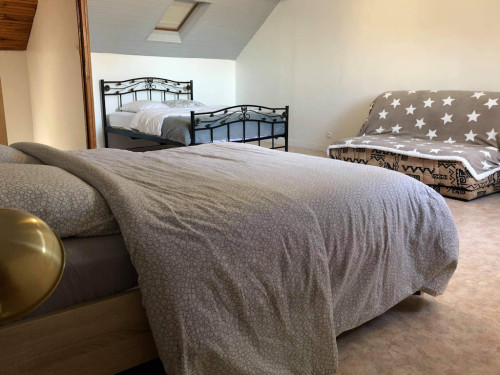 Au deuxième étage : 1 très grande chambre avec 2 lits de deux personnes, un BZ et rangements avec une superbe vue sur Mers les Bains.