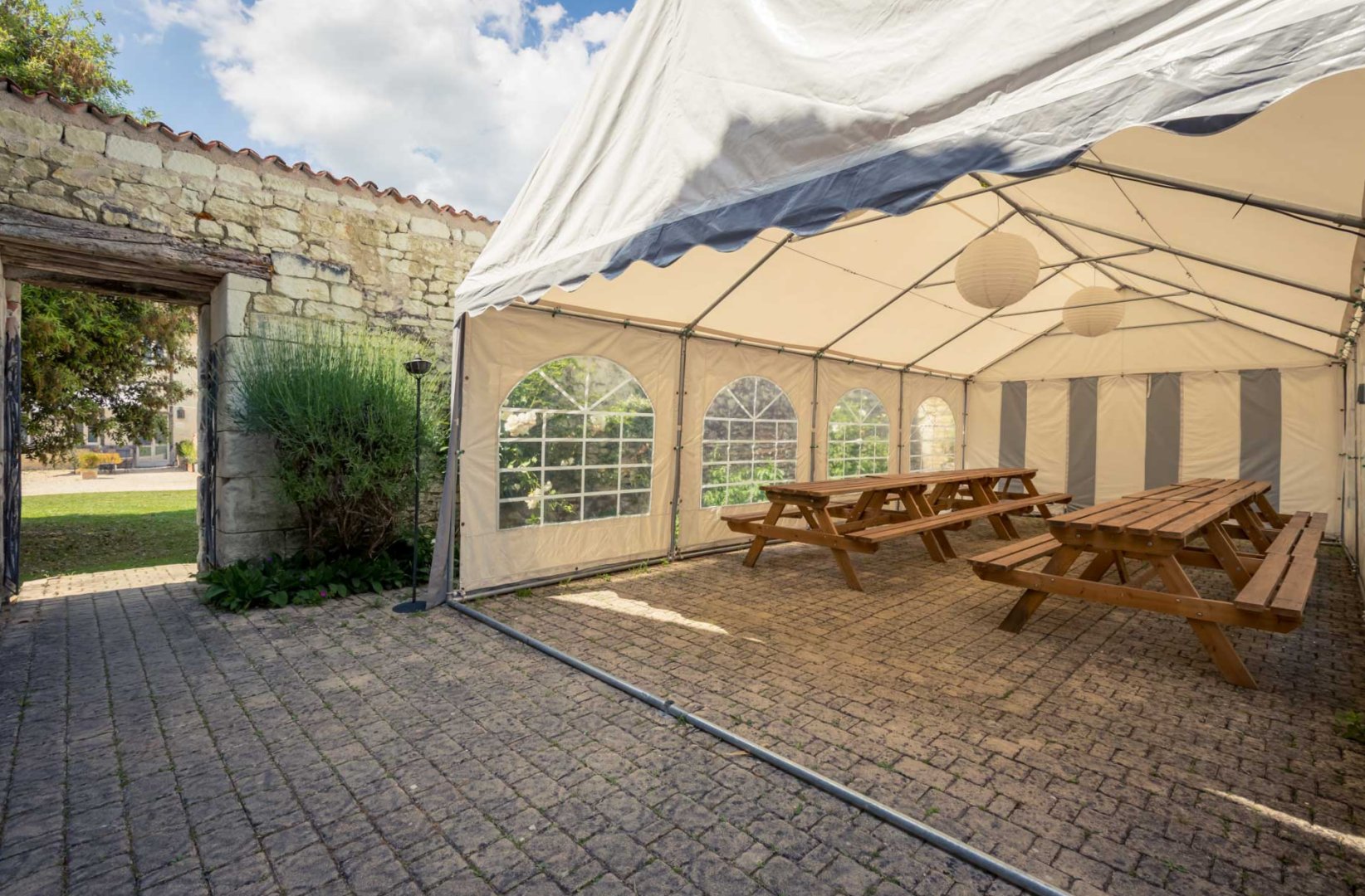 À partir d'avril, grand barnum sur la terrasse de La Sente pour vos repas extérieurs. Grand barbecue.