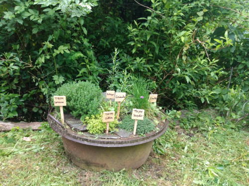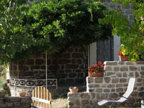 Une petite terrasse ombragée et un jardin champêtre attenant