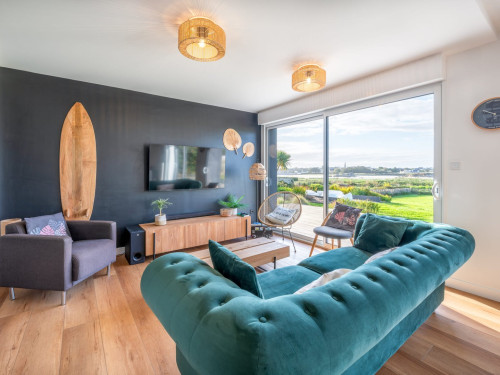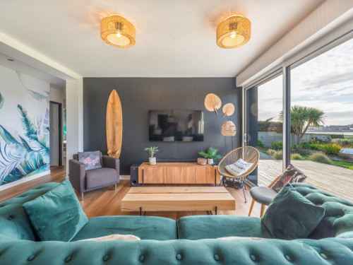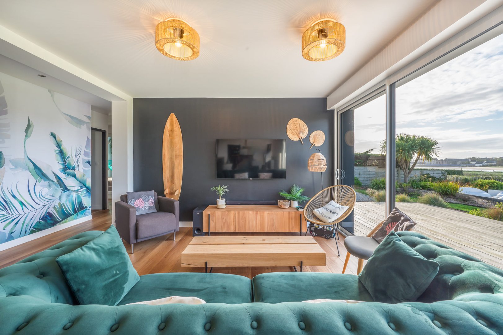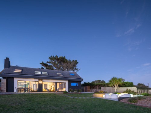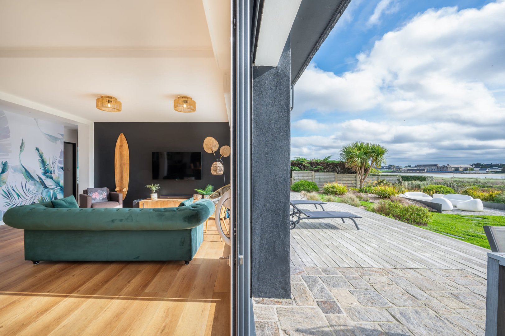 "La villa sur la Baie", à 50 mètres de la plage de la baie de Guisseny et des sentiers côtiers (GR34), – votre maison de location haut de gamme à Kerlouan (Finistère – Bretagne), offre une magnifique vue, calme et reposante, au rythme des marées.