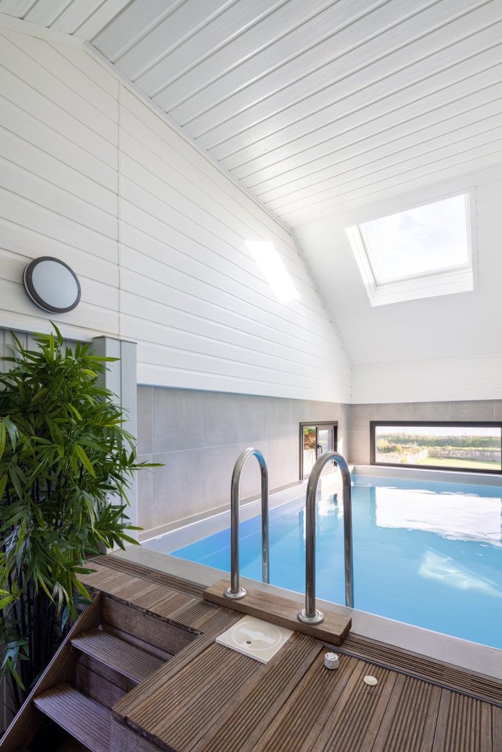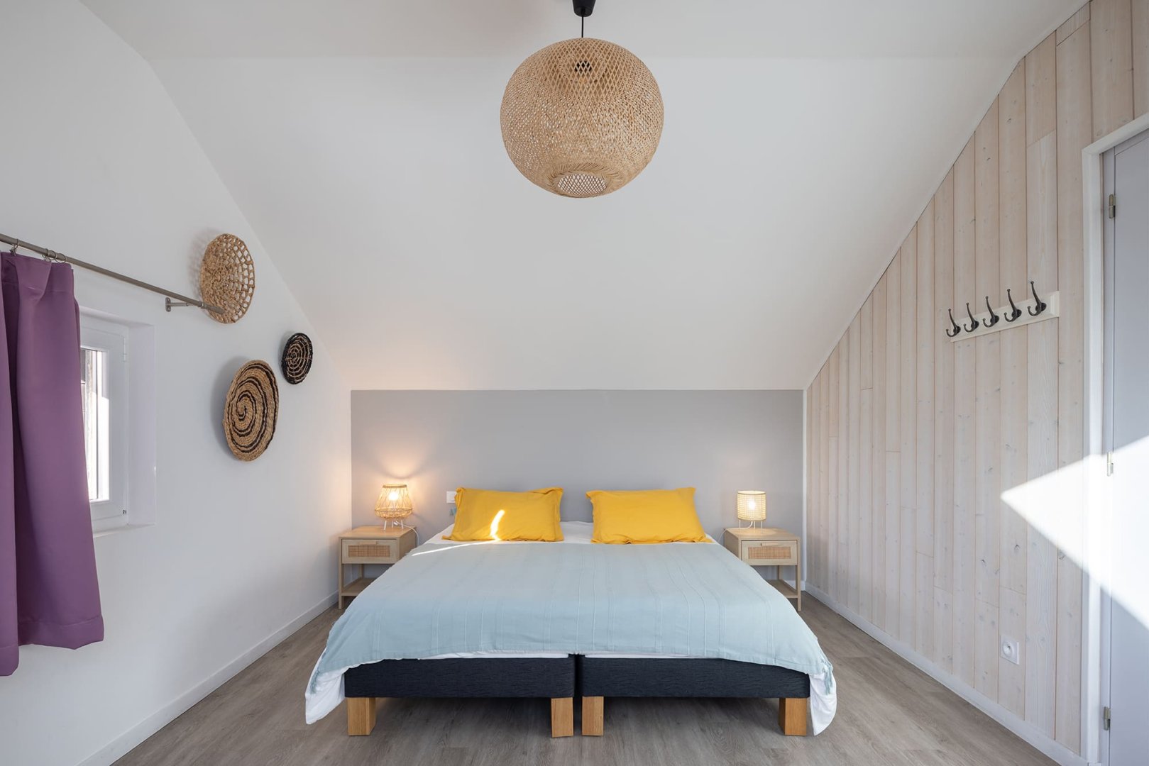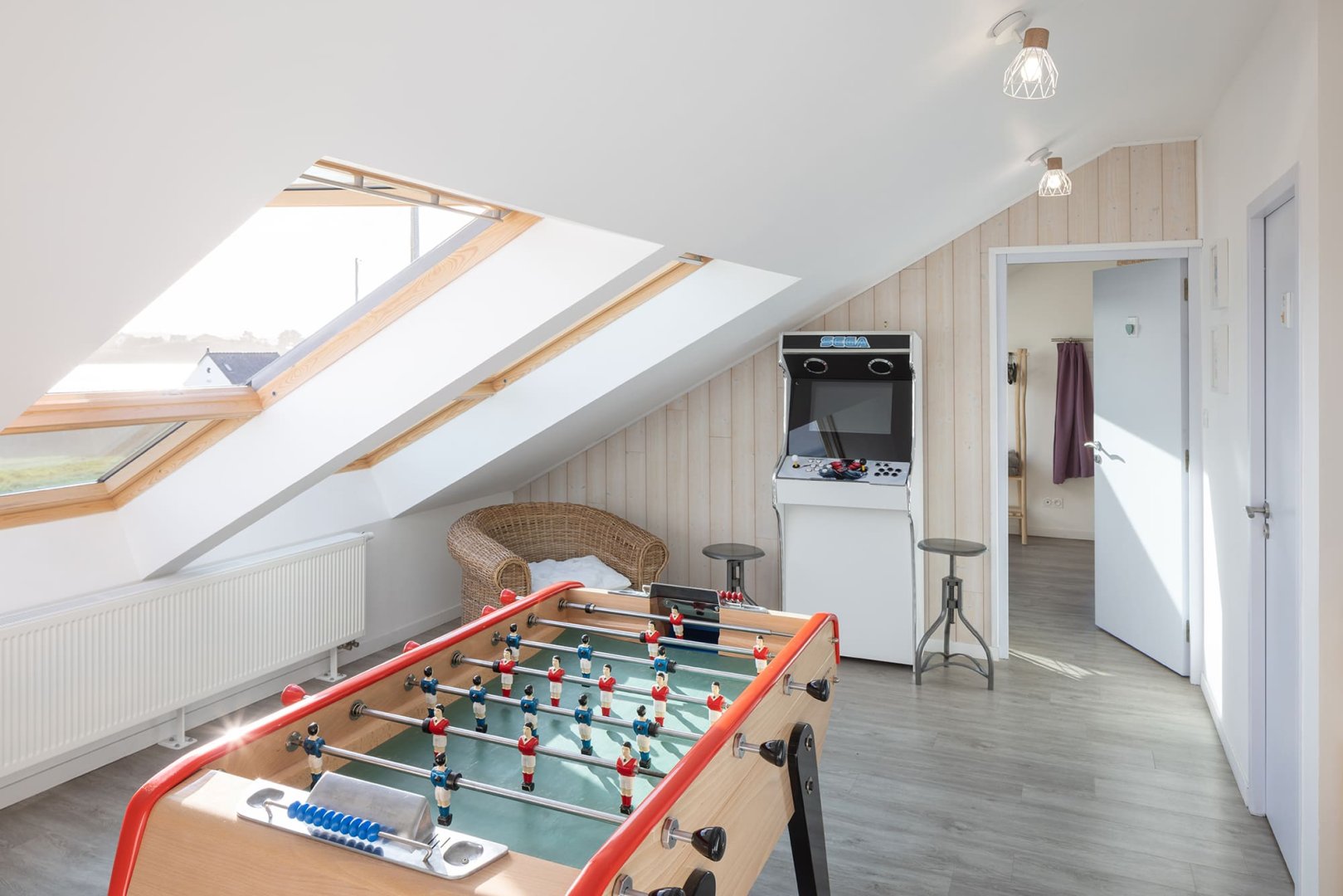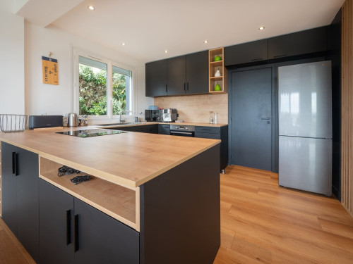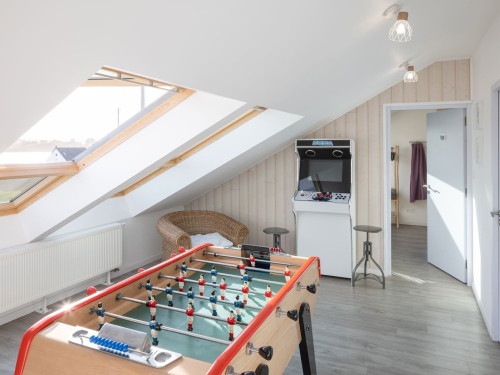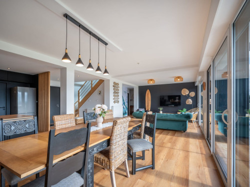 Cette maison d’architecte, fraichement rénovée, confortable et chaleureuse, offre des prestations d’une très grande qualité : piscine privée intérieure chauffée à 29°C de 4.5 x 2.8 m avec nage à contrecourant et élastique de nage, jardin paysagé et clos de 1500 m² avec 2 grandes terrasses, 3 chambres à la décoration soignée et vue sur la baie, 1 salle d’eau au rez-de-chaussée, 1 salle de bain à l’étage, une mezzanine avec un véritable baby-foot Bonzini et un jeu d’arcade pour petits et grands (plus de 1200 jeux d’une autre époque !), table de ping-pong, jeu de mölkky, jeux de société, livres, Netflix …