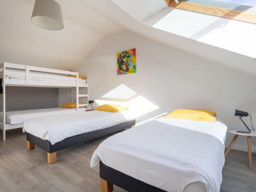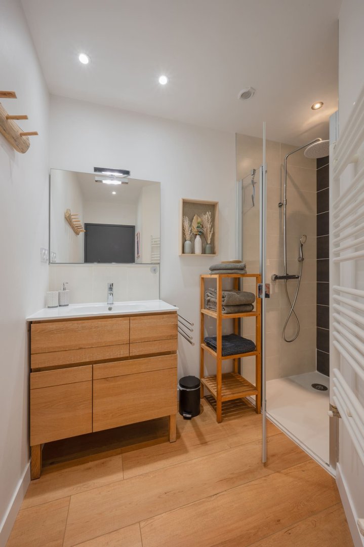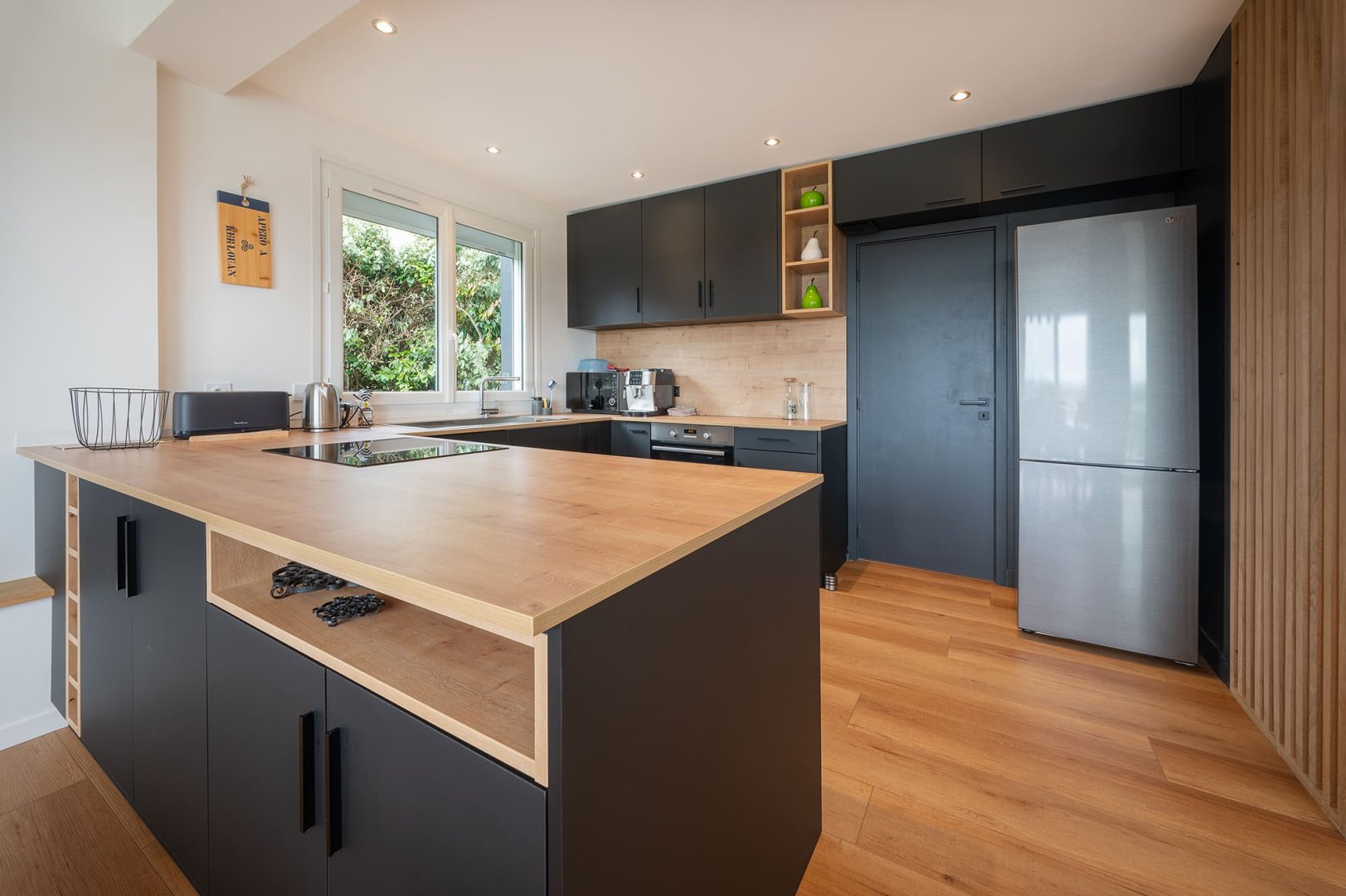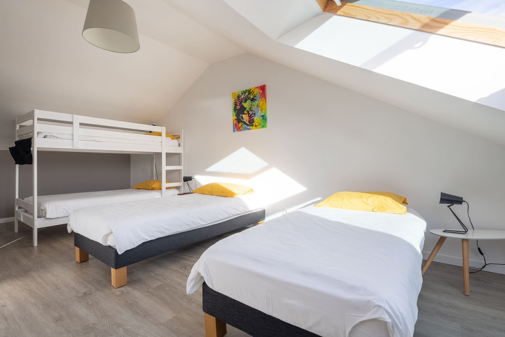 Cette maison d’architecte, fraichement rénovée, confortable et chaleureuse, offre des prestations d’une très grande qualité : piscine privée intérieure chauffée à 29°C de 4.5 x 2.8 m avec nage à contrecourant et élastique de nage, jardin paysagé et clos de 1500 m² avec 2 grandes terrasses, 3 chambres à la décoration soignée et vue sur la baie, 1 salle d’eau au rez-de-chaussée, 1 salle de bain à l’étage, une mezzanine avec un véritable baby-foot Bonzini et un jeu d’arcade pour petits et grands (plus de 1200 jeux d’une autre époque !), table de ping-pong, jeu de mölkky, jeux de société, livres, Netflix …