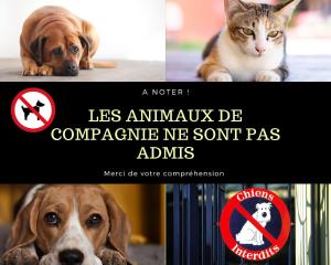 Les animaux de compagnie ne sont pas admis au sein de l'établissement.