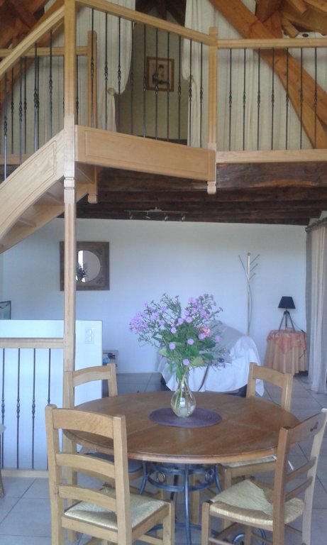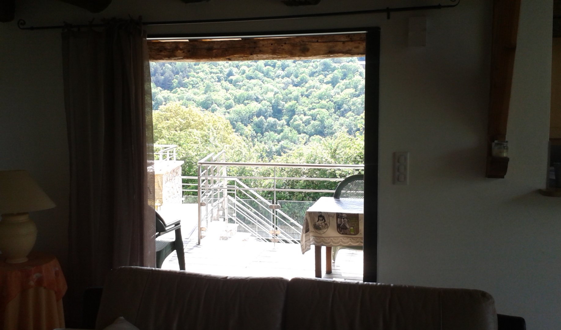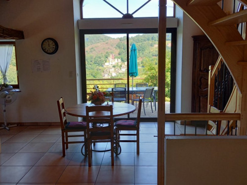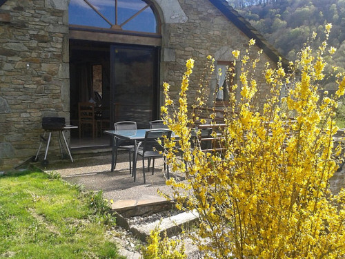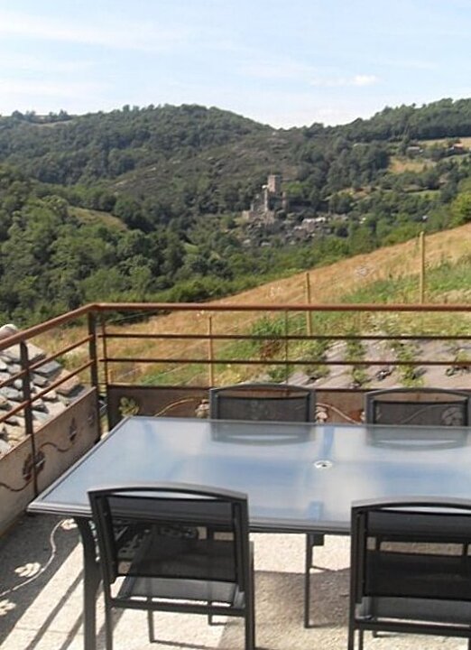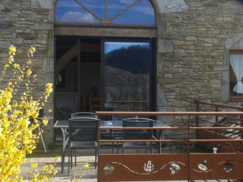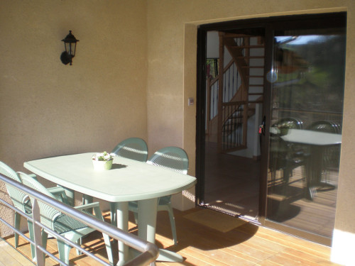 Le gîte a accès à une terrasse et un balcon couvert avec salon de jardin et barbecue.